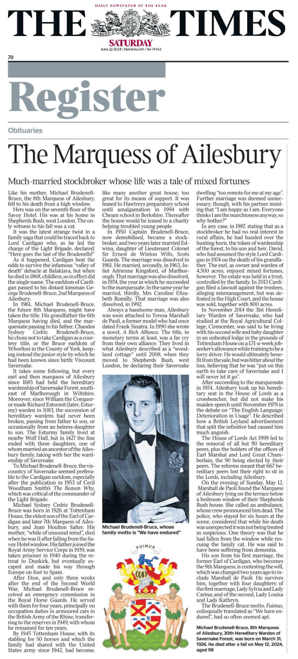 By that time their senior partner was Michael Brudenell-Bruce, then titled Viscount of Savernake, who had been elected to the Stock Exchange in 1954 and later became the Earl of Cardigan – his ancestor famously led the Charge of the Light Brigade in the Crimean War of the 1850s. He finally became the 8th Marquess of Ailesbury and took his seat in the House of Lords in 1973. (He himself served in the Second World War in the Royal Horse Guards, being commissioned as a cavalry officer directly from Eton.)