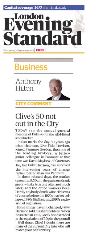 In more than one way, Fiske continued the Bragg traditions of multigenerational private client stockbroking alongside infrastructural investments like its work with Telfos Holdings – originally Charles Clifford founded in 1776 – where Fiske Harrison was also director, which constructed trains from Hungary to South Africa, and built the world’s oldest locomotive still in service here in England. Fiske’s even structured a highly innovative – although sadly eventually failed – bid to purchase London City Airport in 1991 which it led alongside Cazenove & Co as second tier investor.